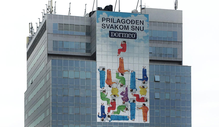 Advertising surface on the front of business towers has excellent visibility. It is a large format outdoor surface which targets not only businessmen but everyone in the vicinity.